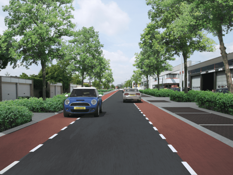 Asfaltrenovatie, het aanbrengen van waterpasserende verharding, markering, groenvoorzieningen en de zorg voor de juiste look-and-feel.